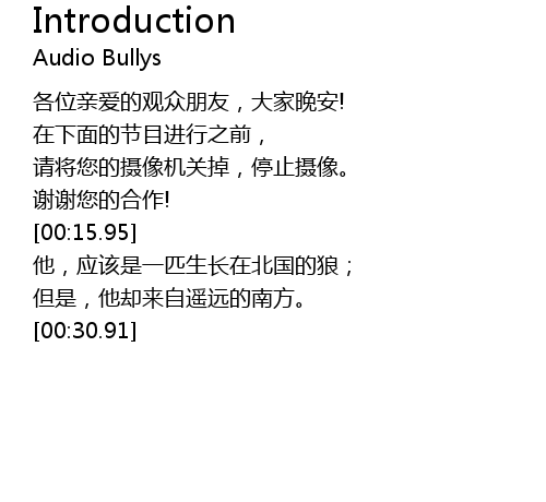 | [00:11.46] | 请将您的摄像机关掉,停止摄像。 |