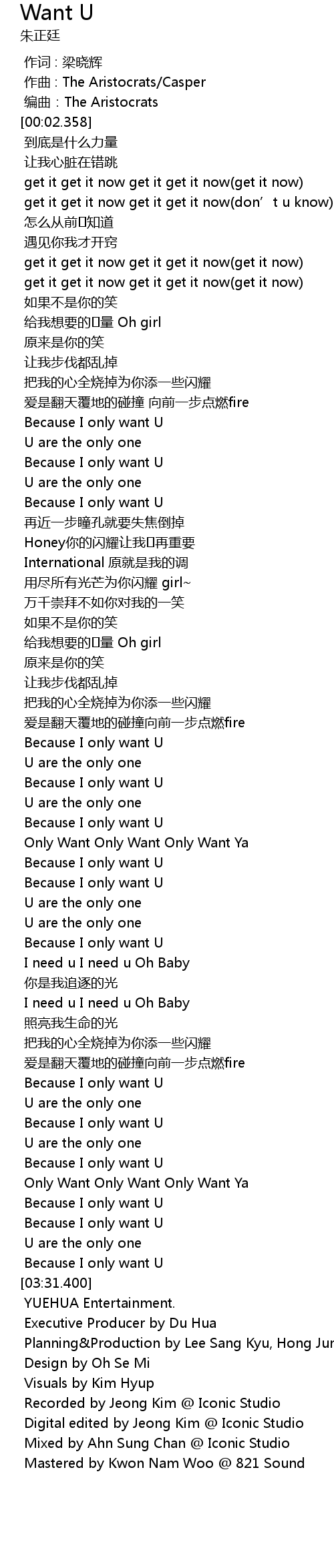| [02:01.423] | Because I only want U |