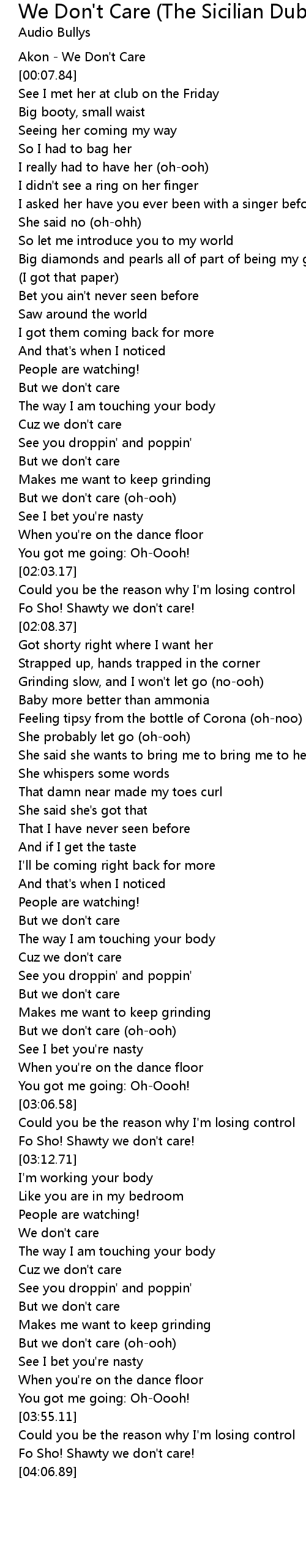 [00:01.22] Akon - We Don't Care