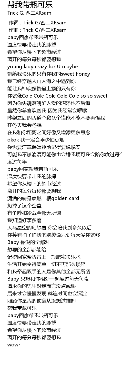 | [01:19.580] | baby回家帮我带瓶可乐 |
