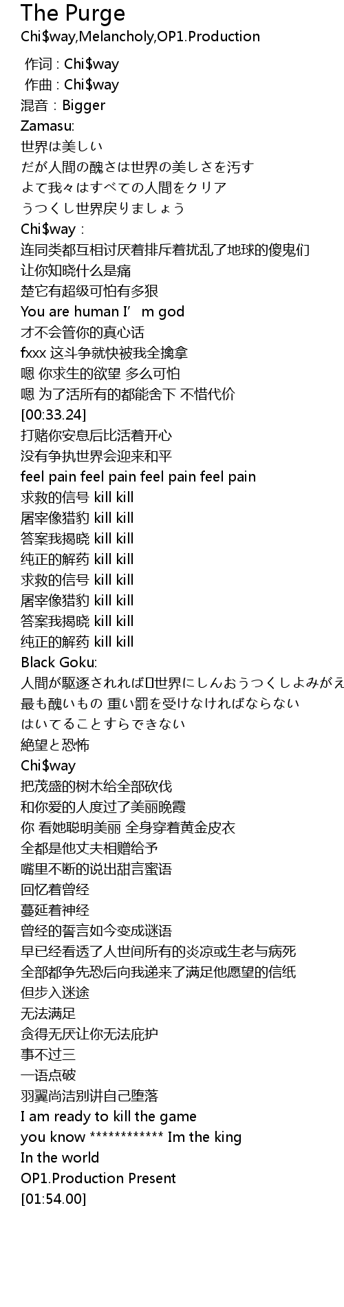 | [00:53.42] | 屠宰像猎豹 kill kill |