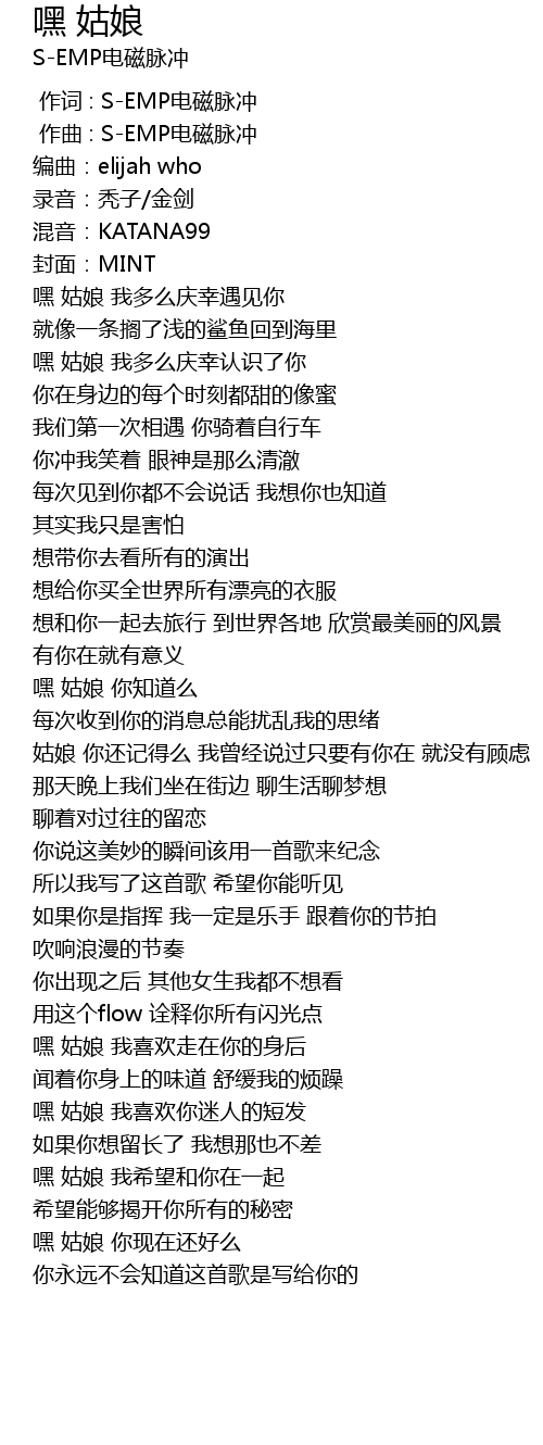 | [00:00.000] | 作词 : S-EMP电磁脉冲 |