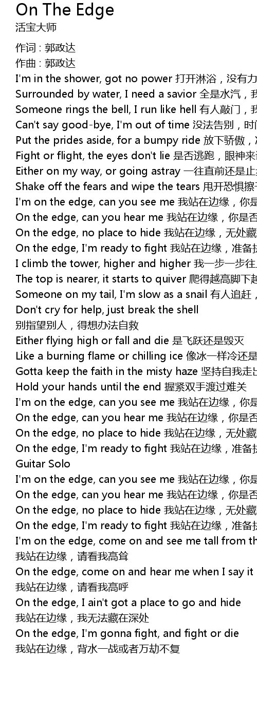 | [02:39] | On the edge, can you hear me 我站在边缘,你是否听见 |