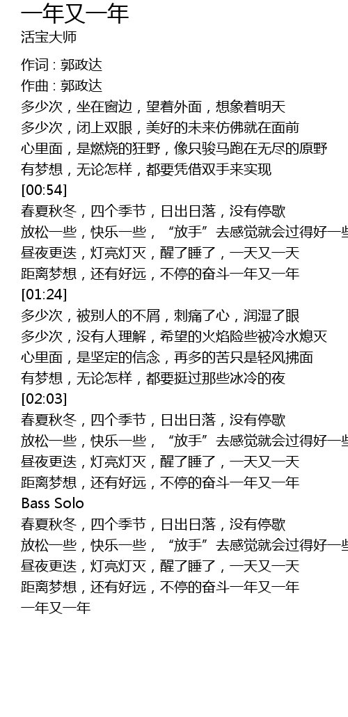 | [02:24] | 距离梦想,还有好远,不停的奋斗一年又一年 |