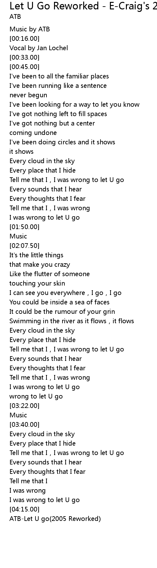 | [04:17.00] | ATB-Let U go(2005 Reworked) |