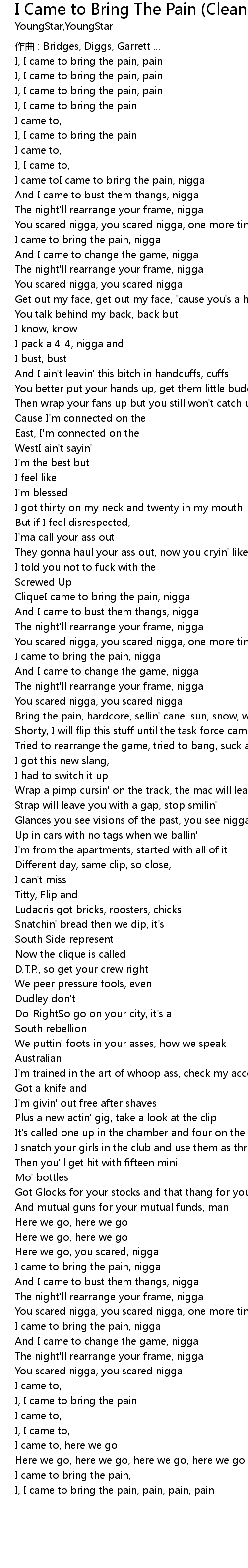 | Tried to rearrange the game, tried to bang, suck at slangin' | |