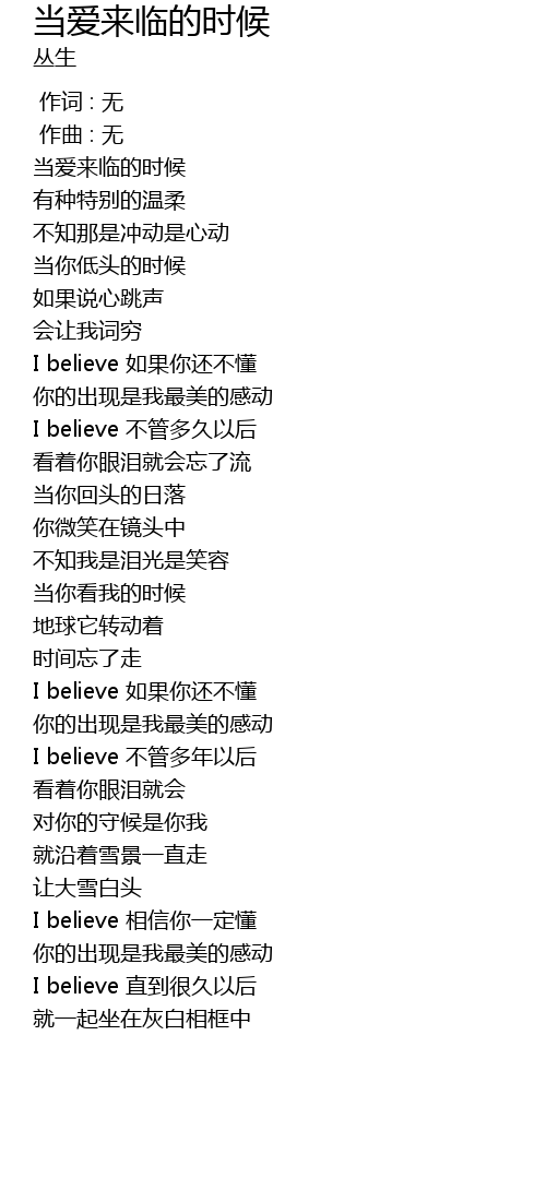 | [00:58.529] | I believe bù guǎn duō jiǔ yǐ hòu |