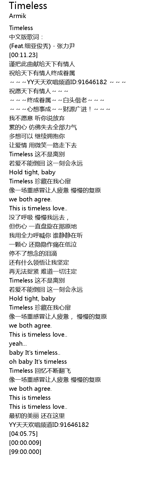 | [00:02.68] | Timeless |