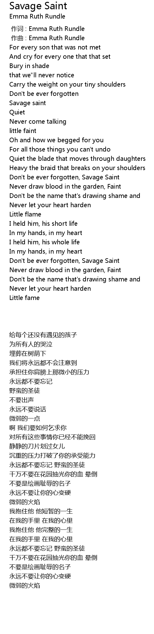 | [03:38.29] | Don't be ever forgotten, Savage Saint |