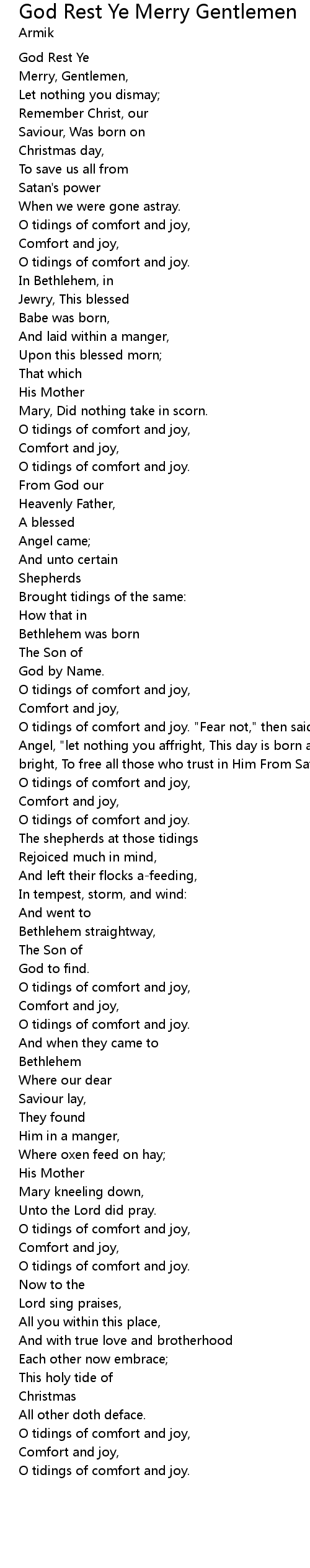 Angel, "let nothing you affright, This day is born a Saviour Of pure Virgin bright, To free all those who trust in Him From Satan's power and might." |