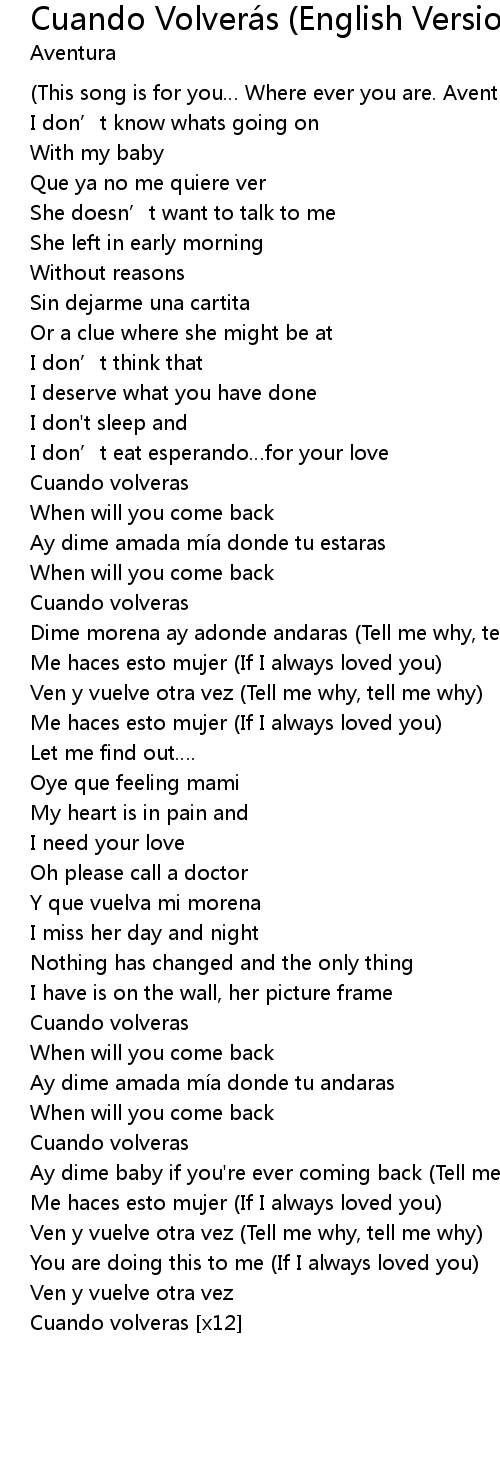 | Ay dime baby if you're ever coming back (Tell me why, tell me why) | |