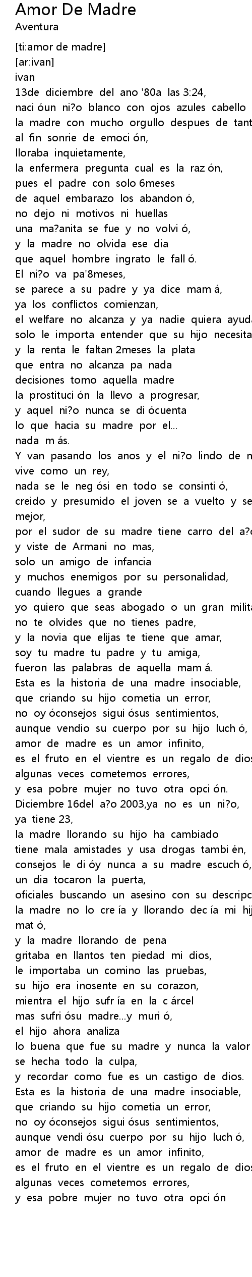 | [02:16.217] | Y van pasando los anos y el ni? o lindo de mami, |