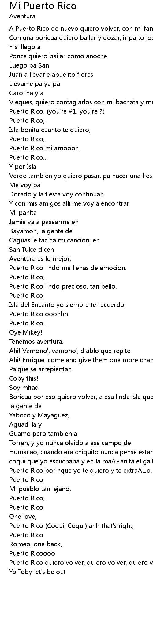 | A Puerto Rico de nuevo quiero volver, con mi familia estar de nuevo otra vez | |