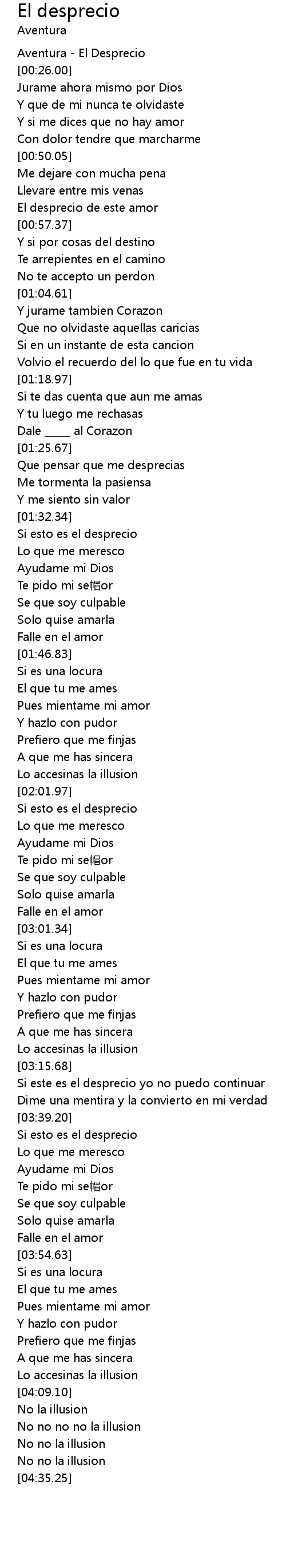 | [03:24.51] | Si este es el desprecio yo no puedo continuar |