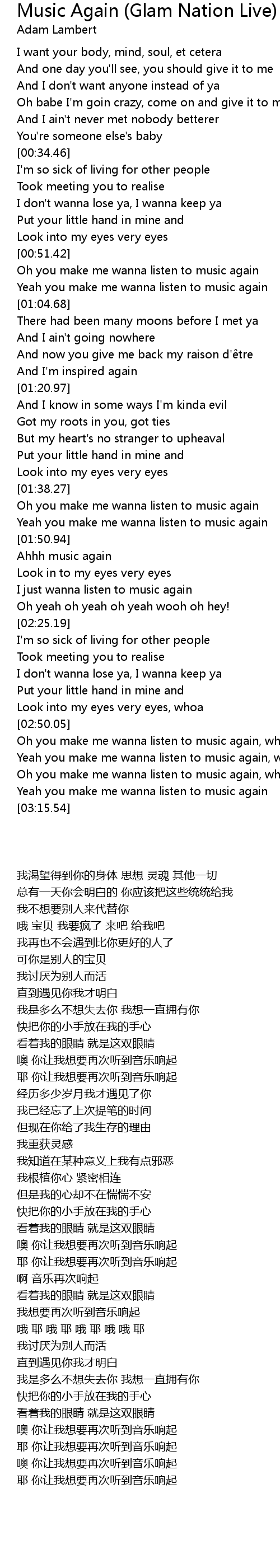 | [00:53.37] | Oh you make me wanna listen to music again |