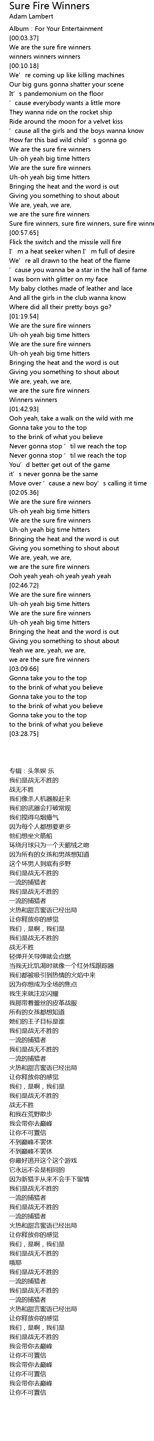 | [00:53.64] | Sure fire winners, sure fire winners, sure fire winners |