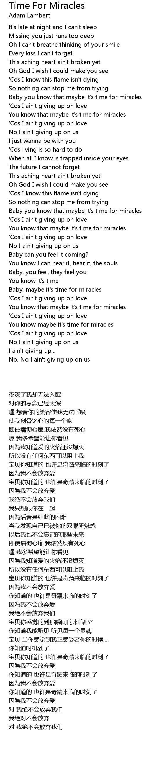 Baby you know that maybe it's time for miracles |