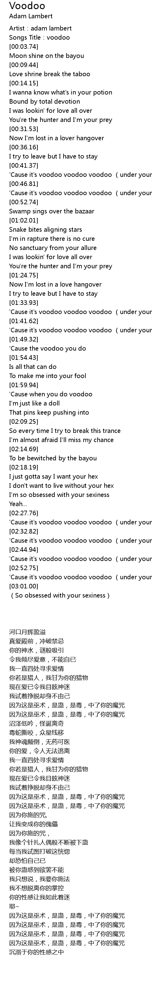 | [00:48.49] | 'Cause it's voodoo voodoo voodoo (under your spell) |