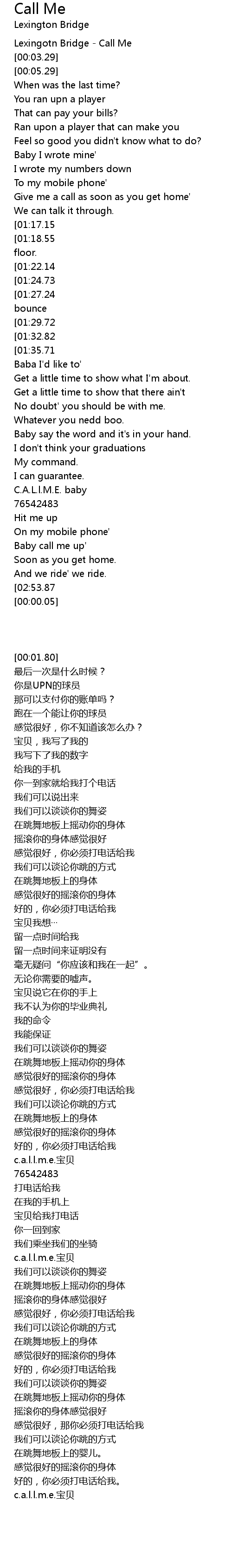 Lexingotn Bridge - Call Me |