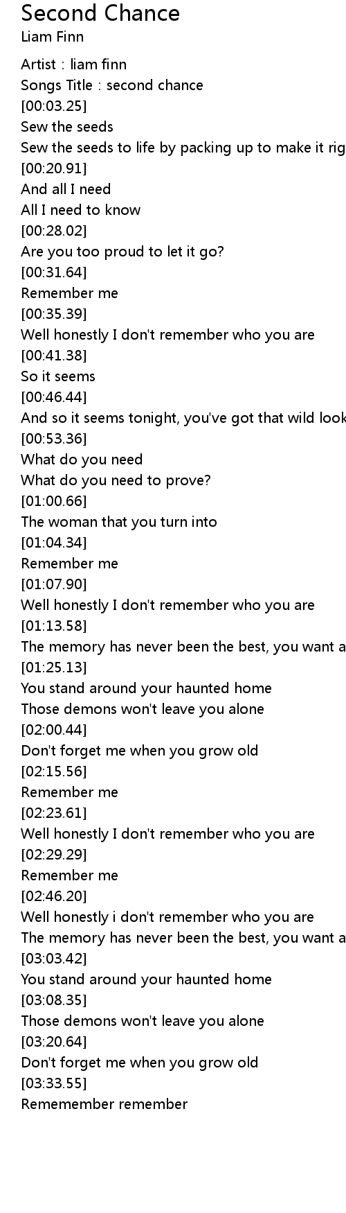 | [01:17.76] | The memory has never been the best, you want a second chance |