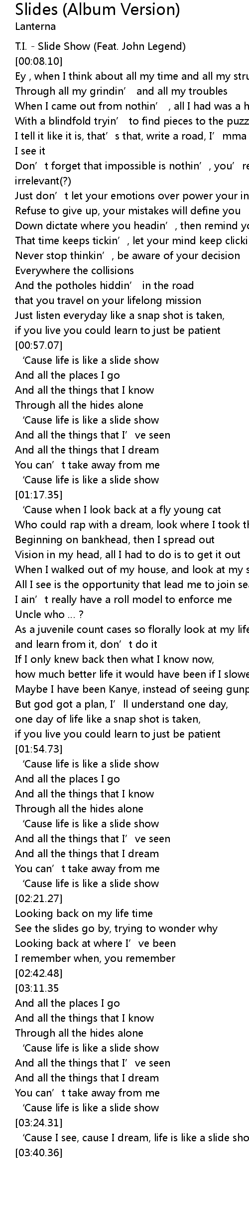 | [00:01.12] | T.I. - Slide Show (Feat. John Legend) |