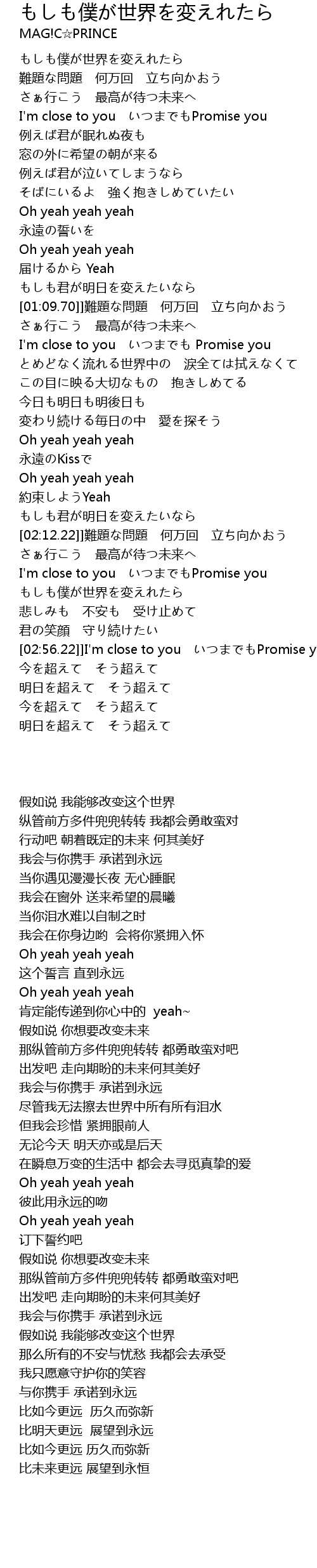 | [00:16.55] | I'm close to you いつまでもPromise you |