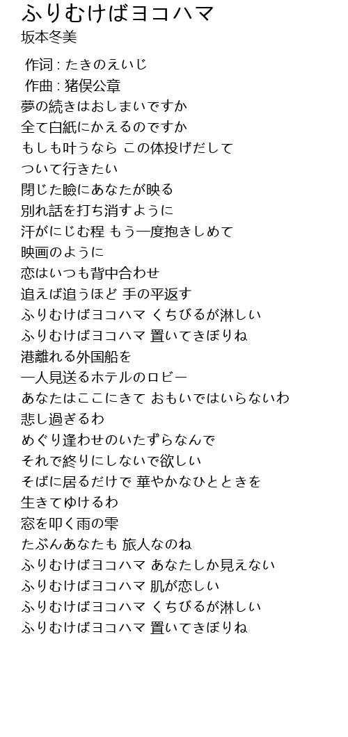 | [03:15.78] | ふりむけばヨコハマ あなたしか見えない |
