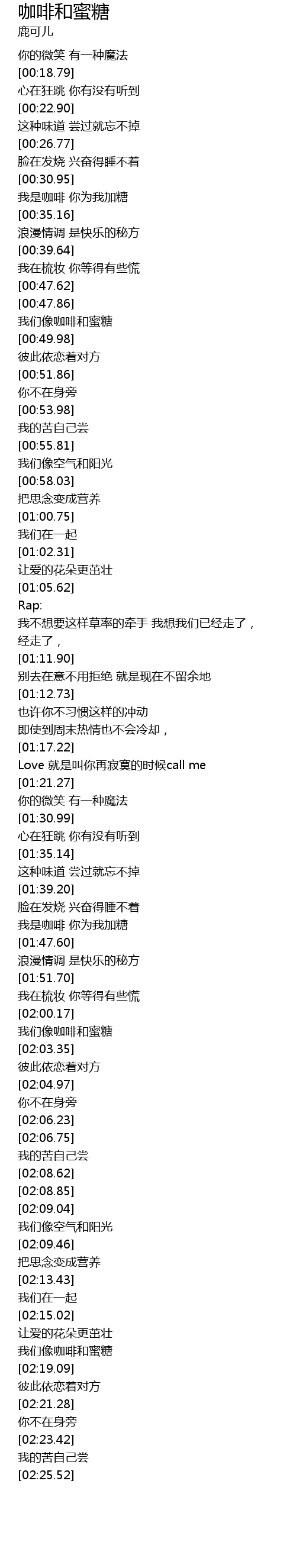 | [02:03.11] | 我们像咖啡和蜜糖 |