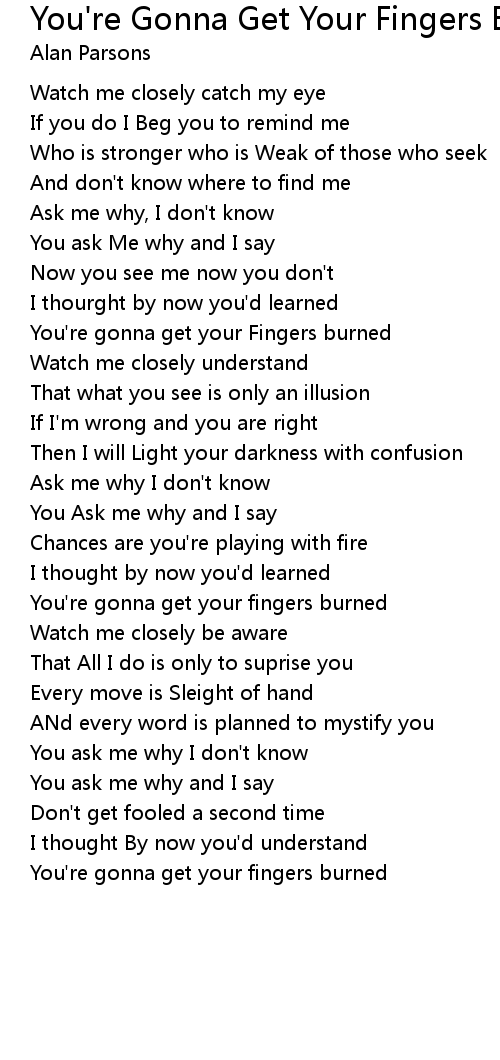 You're gonna get your Fingers burned |