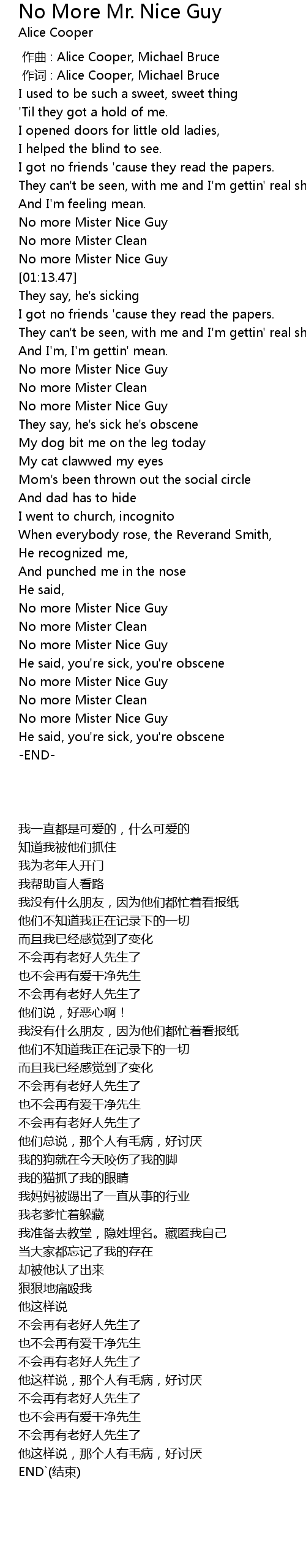 | [01:45.59] | No more Mister Nice Guy |