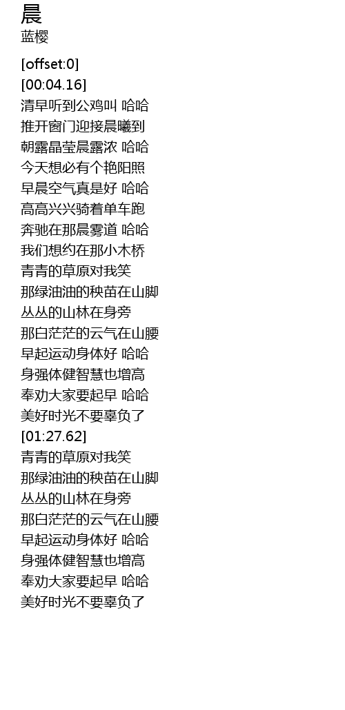 | [01:12.68] | 早起运动身体好 哈哈 |