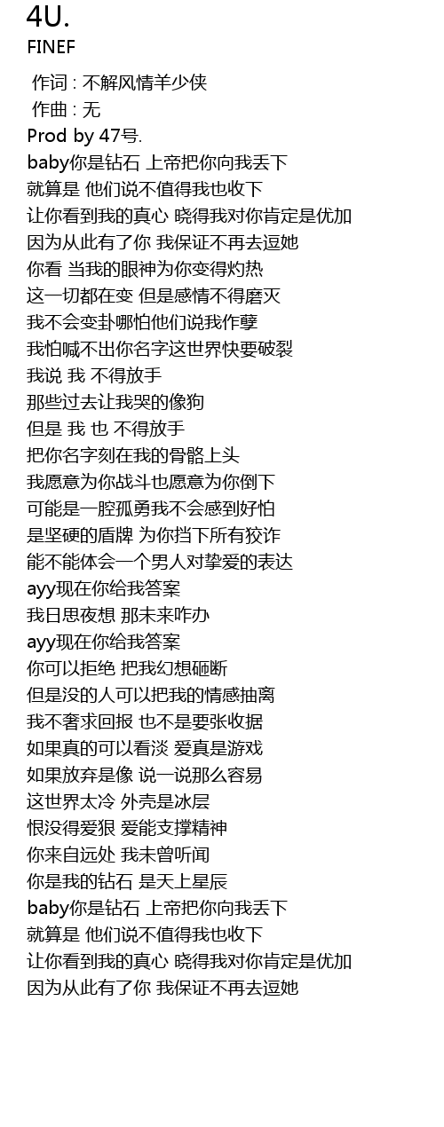 | [01:42.172] | baby nǐ shì zuàn shí shàng dì bǎ nǐ xiàng wǒ diū xià |