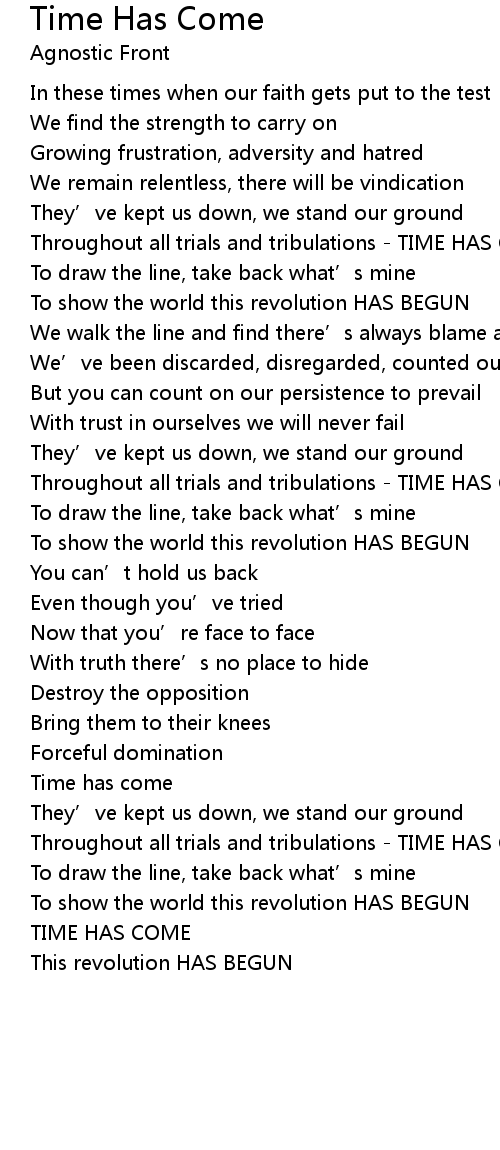 | Throughout all trials and tribulations - TIME HAS COME | |