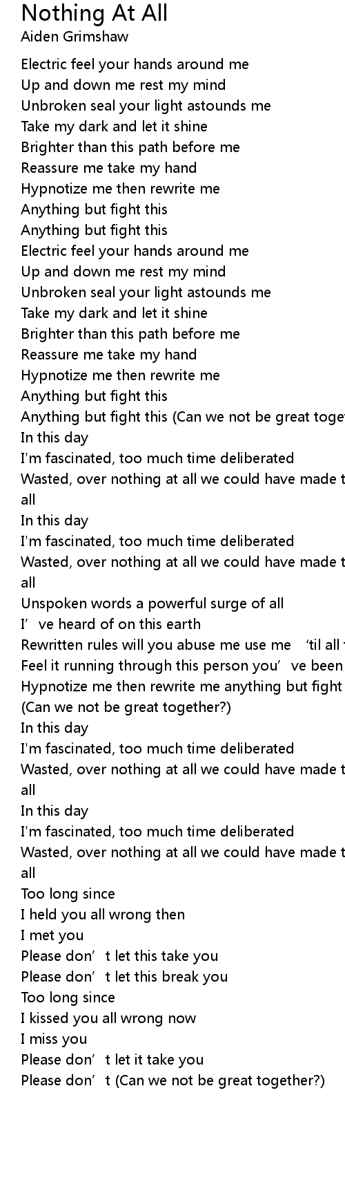 | Hypnotize me then rewrite me anything but fight this, anything but fight this (Can we not be great together?) | |
