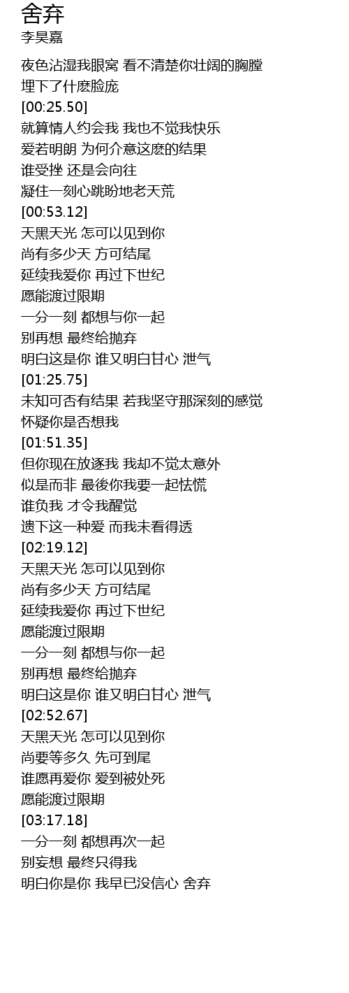 | [03:24.75] | 明白你是你 我早已没信心 舍弃 |