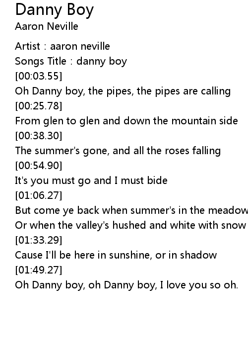 | [00:02.42] | Songs Title: danny boy |