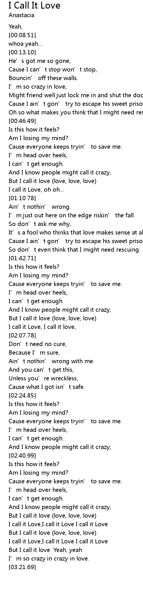 | [03:01.32] | I call it Love, I call it Love I call it Love |