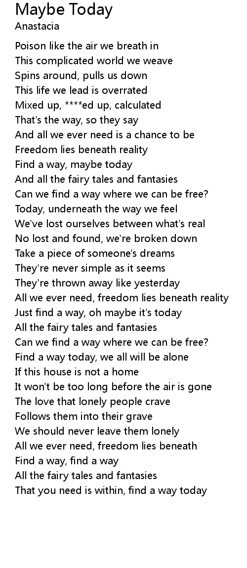 | Just find a way, oh maybe it's today | |