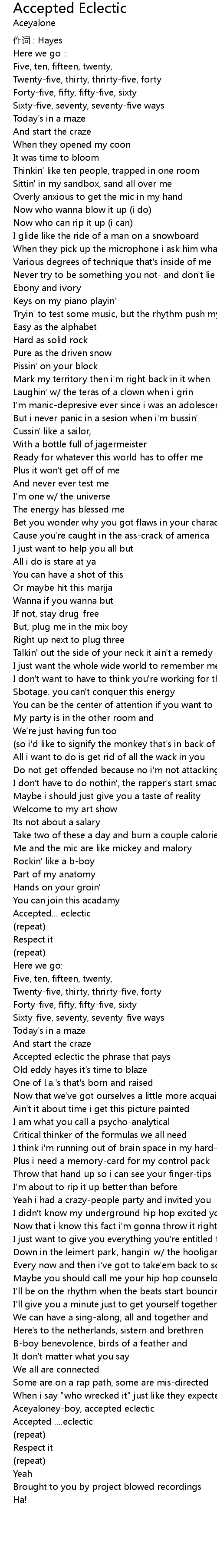 | Aceyaloneyboy, accepted eclectic | |
