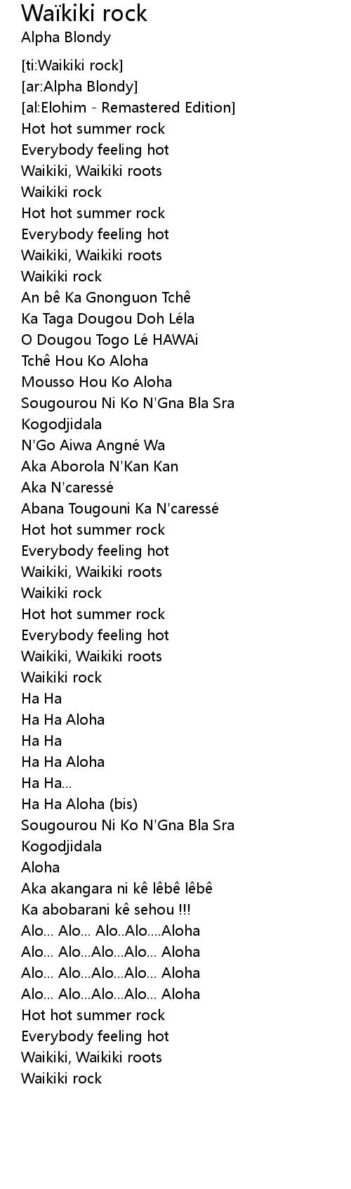 | [04:03.15] | Alo... Alo... Alo... Alo... Aloha |