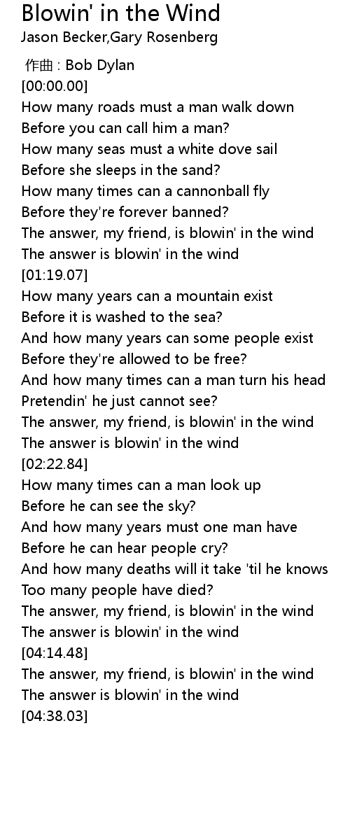 | [04:21.93] | The answer, my friend, is blowin' in the wind |
