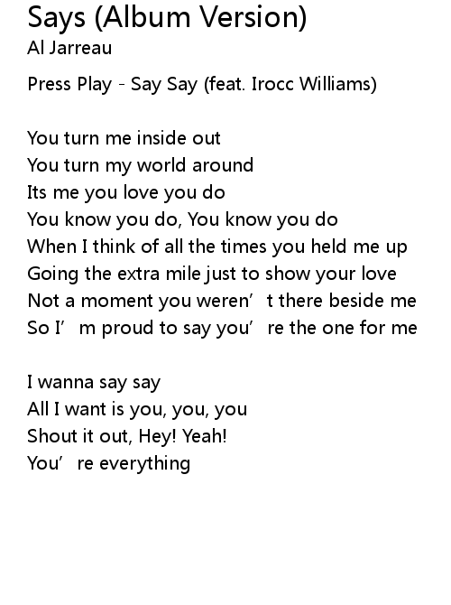 | Press Play - Say Say (feat. Irocc Williams) | |