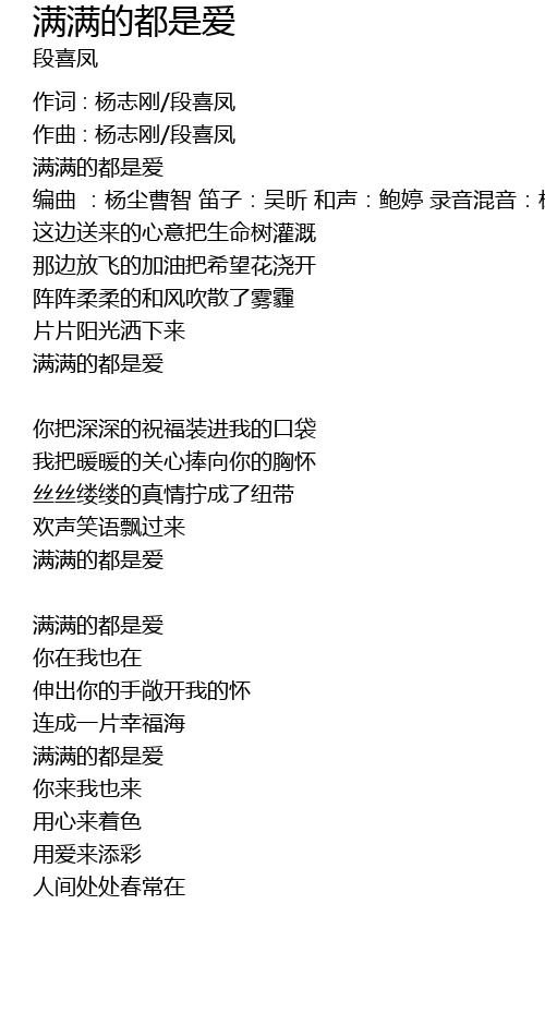 | 作词 : 杨志刚/段喜凤 | |