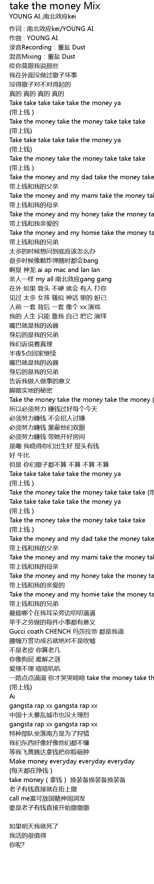 | 一路点点滴滴 你才哭哭啼啼 take the money take the money | |