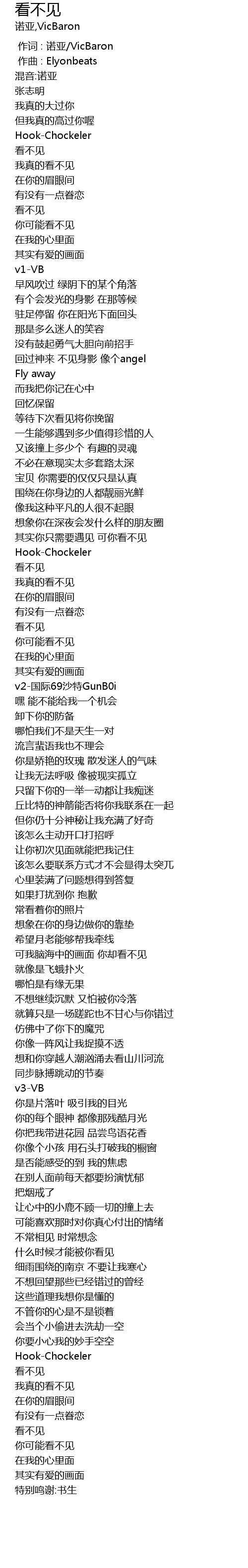 | [03:01.67] | wǒ zhēn de kàn bú jiàn |