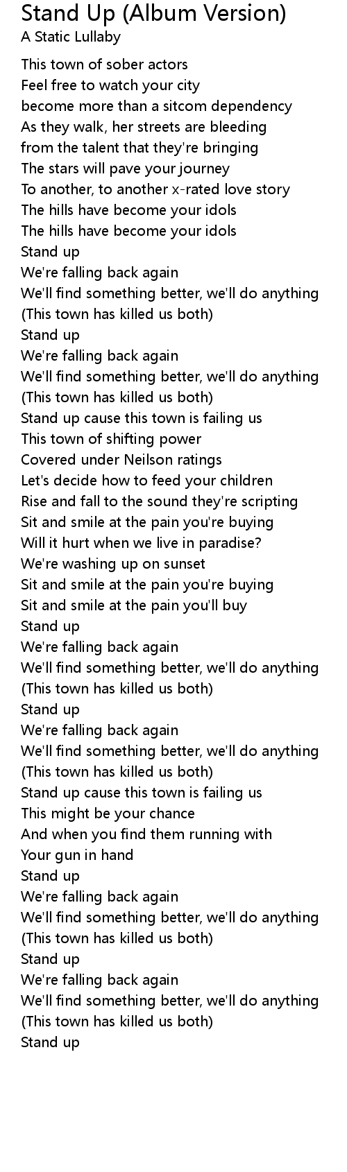 Stand up cause this town is failing us |