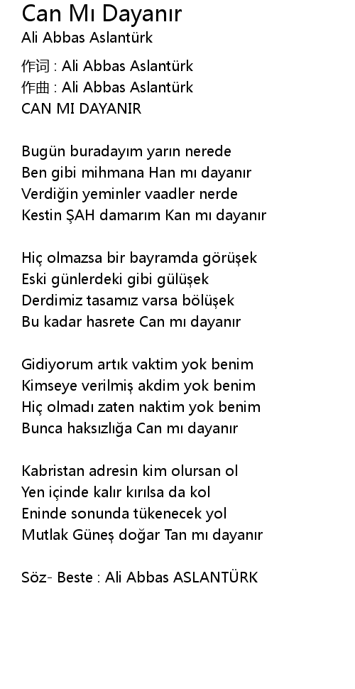 | Song | Can Mı Dayanır |