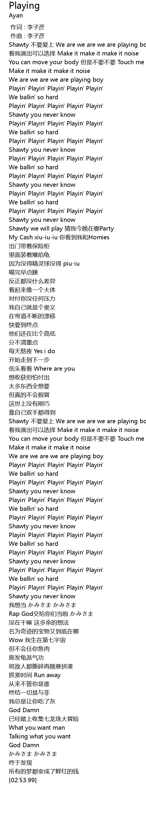 | [00:46.12] | Playin' Playin' Playin' Playin' Playin' |