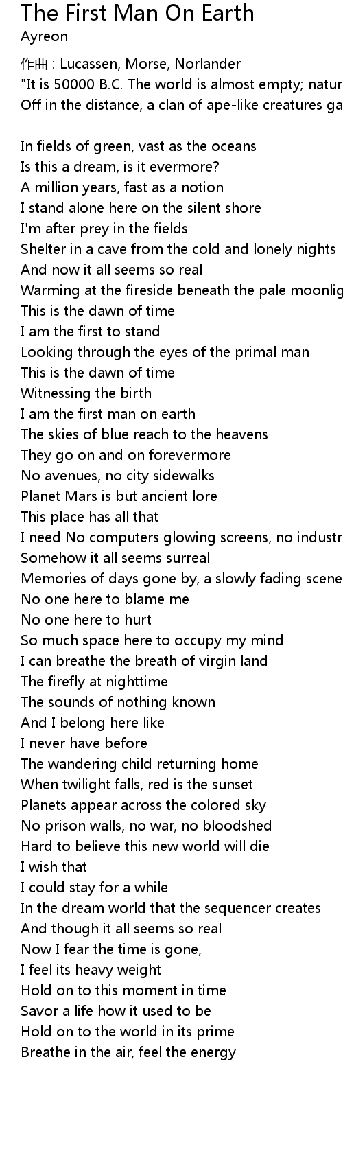 | Song | The First Man On Earth |