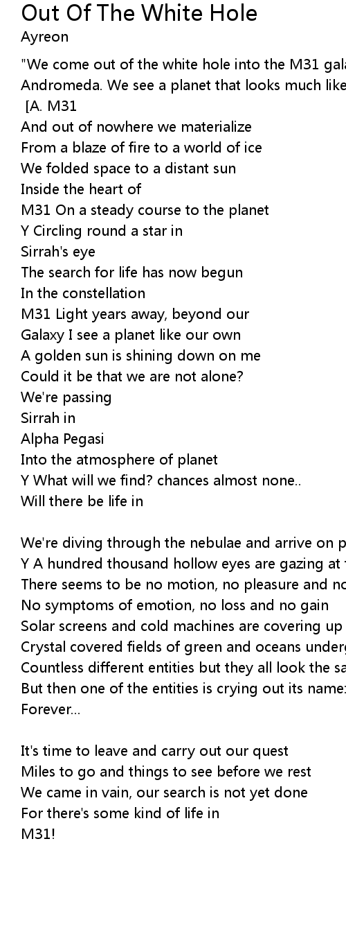"We come out of the white hole into the M31 galaxy, which is also known as Andromeda. We see a planet that looks much like Earth. Could it sustain life? And if, who lives there?" [Timo Kotipelto] [A. M31] |